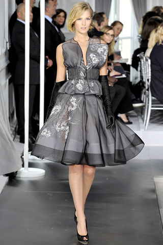 The Dior Spring 2012 couture show was today in Paris. The collection looks like it is heavily inspired by Christian Dior's famous 1947 "New Look." The cinched waist and flowing A-line shirt is classic and feminine.